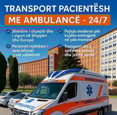 Prej disa vitesh në treg, j’u igurojmë transport të shpejtë dhe të besueshëm me ambulancë në Tiranë dhe Europë apo Turqi, për ato momente kritike vendimtare për jetën.